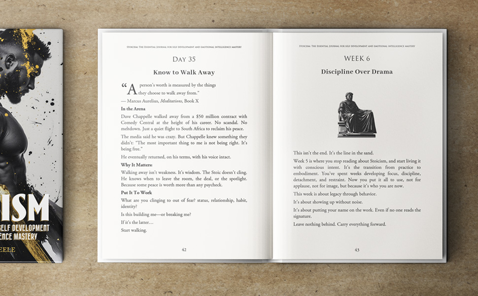 This isn’t a blank journal. It’s a complete 365-day workout for your mind. A powerful daily practice in Stoic wisdom designed to inspire, challenge, and strengthen.